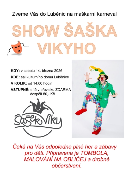 Úvod > Život v obci > Aktuality > Maškarní karneval 2026 v Luběnicích