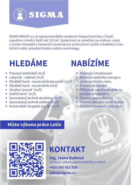 Úvod > Život v obci > Aktuality > Sigma Lutín - pracovní nabídky