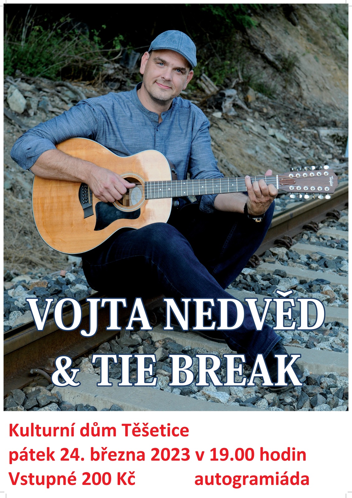 Vystoupení Vojty Nedvěda & Tie Break proběhne v Kulturním domě v Těšeticích v pátek 24. března 2023 v 19:00 hodin, poté autogramiáda. Vstupné 200 Kč.