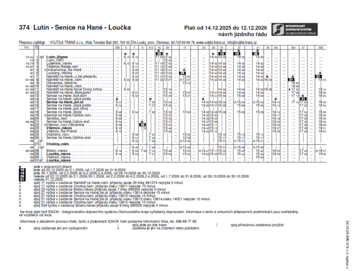 V příloze zasíláme návrhový jízdní řád s následujícími změnami, pokud s navrženými změnami nesouhlasíte, můžete se nejpozději do 6. 11. 2025 obrátit na OÚ se svými připomínkami.